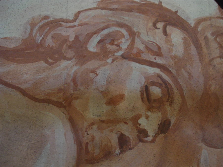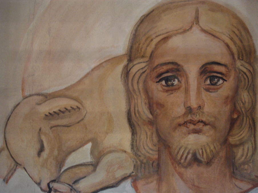 Affresco centrale di Vittorio Trainini, nato a Mompiano il 6 marzo 1888, morto nel 1969. Insegnante, architetto e scultore.
